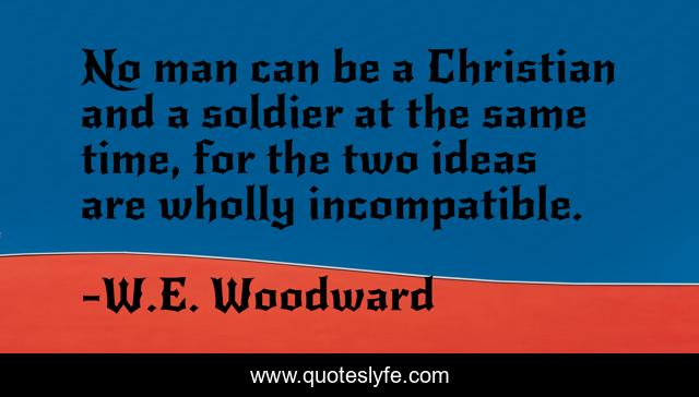 This page presents the quote "No man can be a Christian and a soldier at the same time, for the two ideas are wholly incompatible.". Author of this quote is W.E. Woodward. This quote is about military, christianity, militarism,.