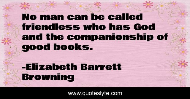 This page presents the quote "No man can be called friendless who has God and the companionship of good books.". Author of this quote is Elizabeth Barrett Browning. This quote is about friendship, companionship, god, religion, books, reading, friends,.