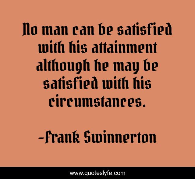 This page presents the quote "No man can be satisfied with his attainment although he may be satisfied with his circumstances.". Author of this quote is Frank Swinnerton. .