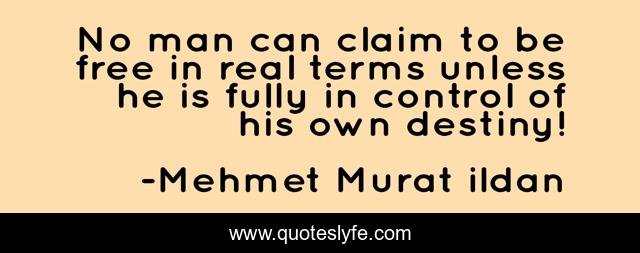 This page presents the quote "No man can claim to be free in real terms unless he is fully in control of his own destiny!". Author of this quote is Mehmet Murat ildan. .