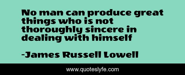 This page presents the quote "No man can produce great things who is not thoroughly sincere in dealing with himself". Author of this quote is James Russell Lowell. .