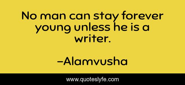 This page presents the quote "No man can stay forever young unless he is a writer.". Author of this quote is Alamvusha. This quote is about author, writer, knowledge, book-s,.