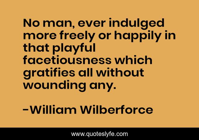 This page presents the quote "No man, ever indulged more freely or happily in that playful facetiousness which gratifies all without wounding any.". Author of this quote is William Wilberforce. This quote is about william-pitt-the-younger, william-wilberforce, friendship, feelings,.