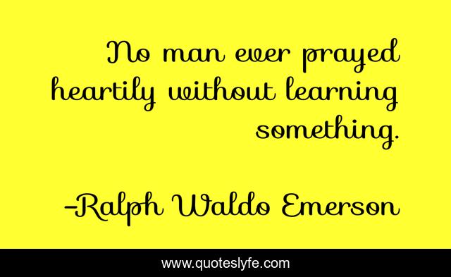 This page presents the quote "No man ever prayed heartily without learning something.". Author of this quote is Ralph Waldo Emerson. This quote is about without, something, man,.