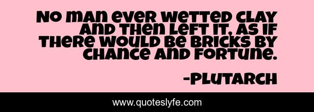 This page presents the quote "No man ever wetted clay and then left it, as if there would be bricks by chance and fortune.". Author of this quote is Plutarch. This quote is about bricks, fortune, man,.