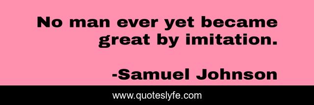 This page presents the quote "No man ever yet became great by imitation.". Author of this quote is Samuel Johnson. .