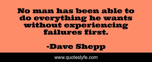 This page presents the quote "No man has been able to do everything he wants without experiencing failures first.". Author of this quote is Dave Shepp. This quote is about failure, growth, love, affection,.