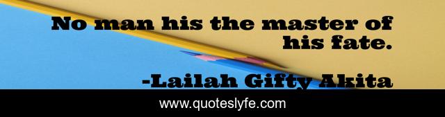 This page presents the quote "No man his the master of his fate.". Author of this quote is Lailah Gifty Akita. This quote is about inspirationsl, man, master, fate, wise-sayings,.