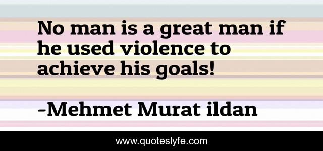 This page presents the quote "No man is a great man if he used violence to achieve his goals!". Author of this quote is Mehmet Murat ildan. This quote is about great-men, violence, ildan-words-of-wisdom, great-man, man,.