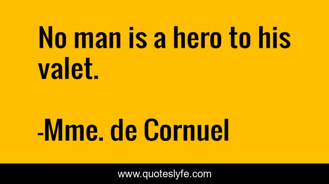 This page presents the quote "No man is a hero to his valet.". Author of this quote is Mme. de Cornuel. .