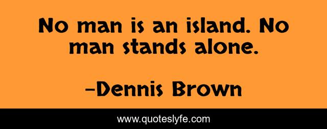 This page presents the quote "No man is an island. No man stands alone.". Author of this quote is Dennis Brown. This quote is about island, stands, man,.