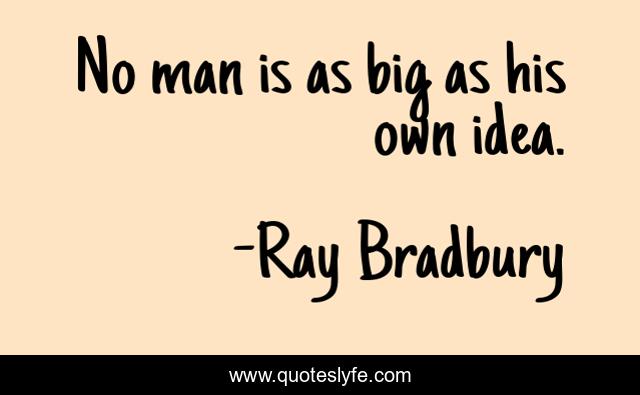 This page presents the quote "No man is as big as his own idea.". Author of this quote is Ray Bradbury. This quote is about ideas, idea, man,.