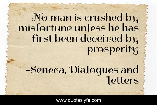 This page presents the quote "No man is crushed by misfortune unless he has first been deceived by prosperity". Author of this quote is Seneca, Dialogues and Letters. .