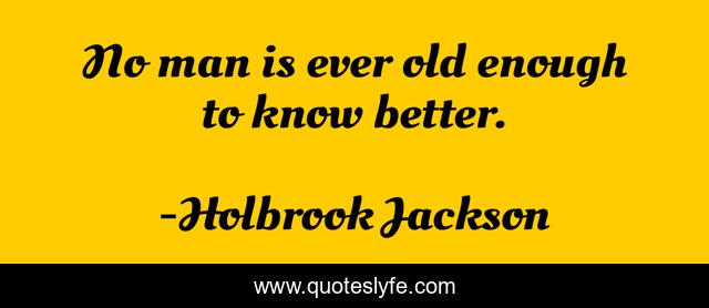 This page presents the quote "No man is ever old enough to know better.". Author of this quote is Holbrook Jackson. This quote is about better, man,.