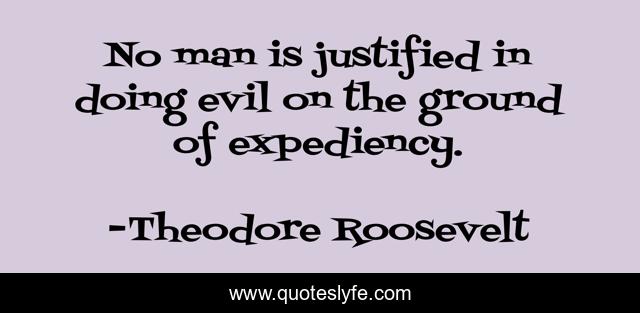 This page presents the quote "No man is justified in doing evil on the ground of expediency.". Author of this quote is Theodore Roosevelt. This quote is about justice, society, means-justifying-the-ends, evil,.