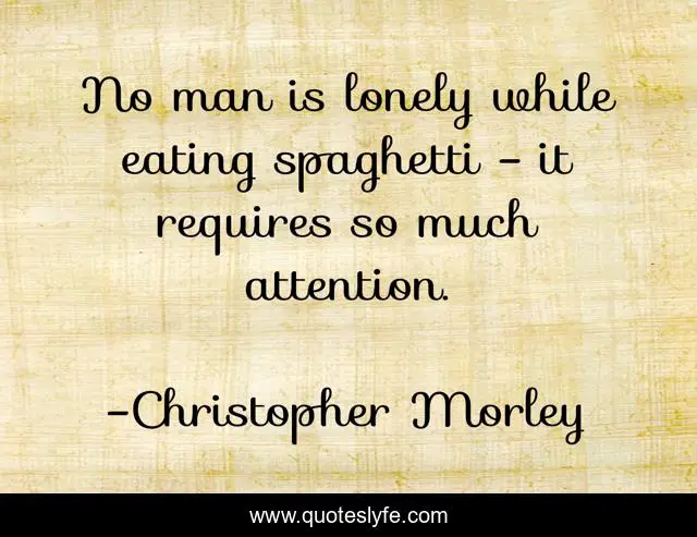 "Christopher Morley Quotes." Quoteslyfe.com, 2025. Fri. 05 Dec. 2025. <https://www.quoteslyfe.com/quote/No-man-is-lonely-while-eating-spaghetti-265073>.