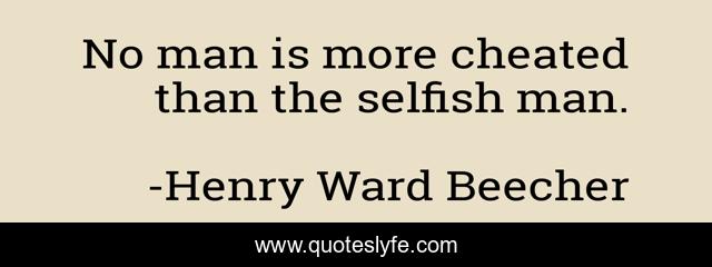 This page presents the quote "No man is more cheated than the selfish man.". Author of this quote is Henry Ward Beecher. This quote is about selfishness, cheated,.