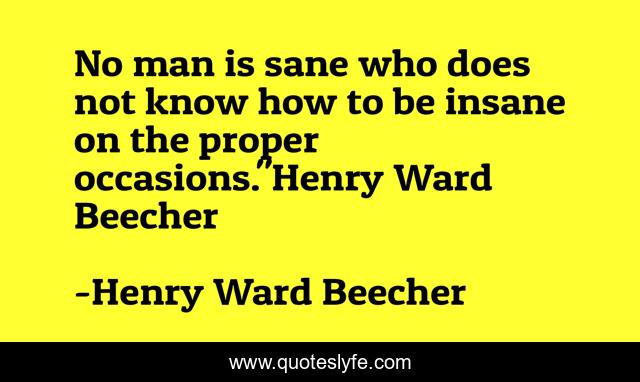 This page presents the quote "No man is sane who does not know how to be insane on the proper occasions."Henry Ward Beecher". Author of this quote is Henry Ward Beecher. This quote is about sanity, insanity,.