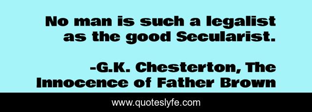 This page presents the quote "No man is such a legalist as the good Secularist.". Author of this quote is G.K. Chesterton, The Innocence of Father Brown. This quote is about the-law, secularism, legalism, morality,.