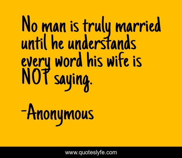 This page presents the quote "No man is truly married until he understands every word his wife is NOT saying.". Author of this quote is Anonymous. .