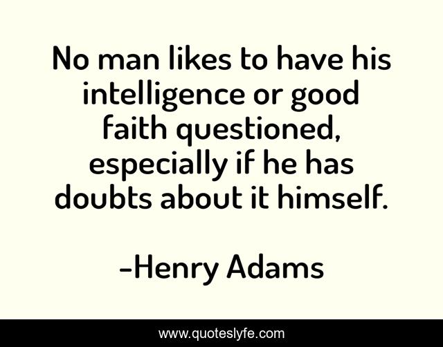 This page presents the quote "No man likes to have his intelligence or good faith questioned, especially if he has doubts about it himself.". Author of this quote is Henry Adams. This quote is about faith, good, man,.