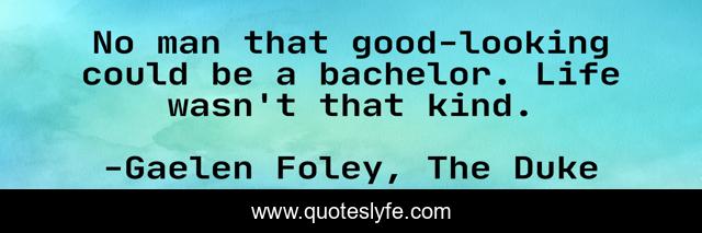 This page presents the quote "No man that good-looking could be a bachelor. Life wasn't that kind.". Author of this quote is Gaelen Foley, The Duke. This quote is about gaelen-foley, quote, novel, the-duke,.