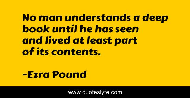 This page presents the quote "No man understands a deep book until he has seen and lived at least part of its contents.". Author of this quote is Ezra Pound. .