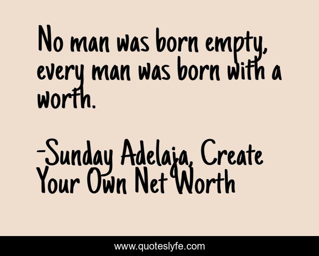This page presents the quote "No man was born empty, every man was born with a worth.". Author of this quote is Sunday Adelaja, Create Your Own Net Worth. This quote is about life, self-image, nature, god, self-worth, born, birth, emptiness, worth,.