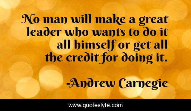 This page presents the quote "No man will make a great leader who wants to do it all himself or get all the credit for doing it.". Author of this quote is Andrew Carnegie. This quote is about great, leader, man,.