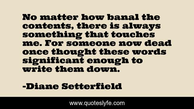 "Diane Setterfield Quotes." Quoteslyfe.com, 2025. Fri. 05 Dec. 2025. <https://www.quoteslyfe.com/quote/No-matter-how-banal-the-contents-there-197117>.