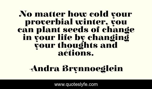 This page presents the quote "No matter how cold your proverbial winter, you can plant seeds of change in your life by changing your thoughts and actions.". Author of this quote is Andra Brynnoeglein. This quote is about life, winter, thought, action, cold, change,.