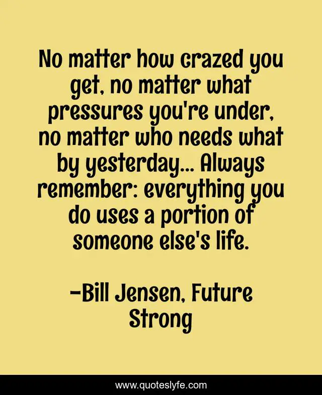 "Bill Jensen, Future Strong Quotes." Quoteslyfe.com, 2025. Fri. 05 Dec. 2025. <https://www.quoteslyfe.com/quote/No-matter-how-crazed-you-get-no-65224>.