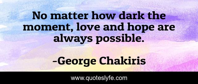 This page presents the quote "No matter how dark the moment, love and hope are always possible.". Author of this quote is George Chakiris. This quote is about dark, moment, love, affection,.