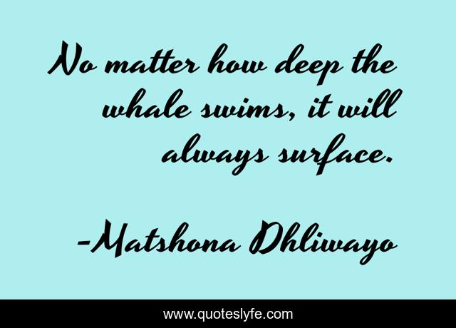 "Matshona Dhliwayo Quotes." Quoteslyfe.com, 2025. Fri. 05 Dec. 2025. <https://www.quoteslyfe.com/quote/No-matter-how-deep-the-whale-swims-207576>.