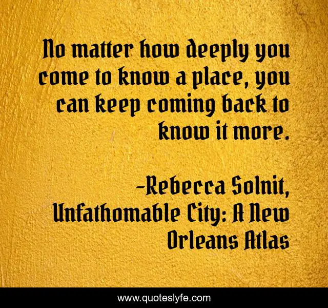 "Rebecca Solnit, Unfathomable City: A New Orleans Atlas Quotes." Quoteslyfe.com, 2025. Fri. 05 Dec. 2025. <https://www.quoteslyfe.com/quote/No-matter-how-deeply-you-come-to-137451>.