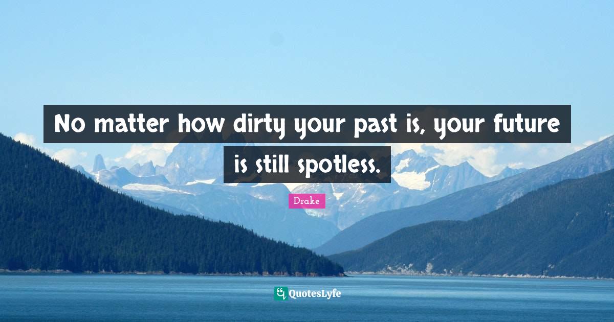 This page presents the quote "No matter how dirty your past is, your future is still spotless.". Author of this quote is Drake. This quote is about past, your past, dirty, your future, matter,.