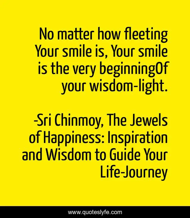 "Sri Chinmoy, The Jewels of Happiness: Inspiration and Wisdom to Guide Your Life-Journey Quotes." Quoteslyfe.com, 2025. Fri. 05 Dec. 2025. <https://www.quoteslyfe.com/quote/No-matter-how-fleeting-Your-smile-is-195044>.