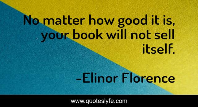 This page presents the quote "No matter how good it is, your book will not sell itself.". Author of this quote is Elinor Florence. This quote is about publishing, writer, writing, books, authors, book-business,.