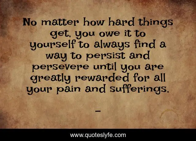 No matter how hard things get, you owe it to yourself to always find a way to persist and persevere until you are greatly rewarded for all your pain and sufferings.