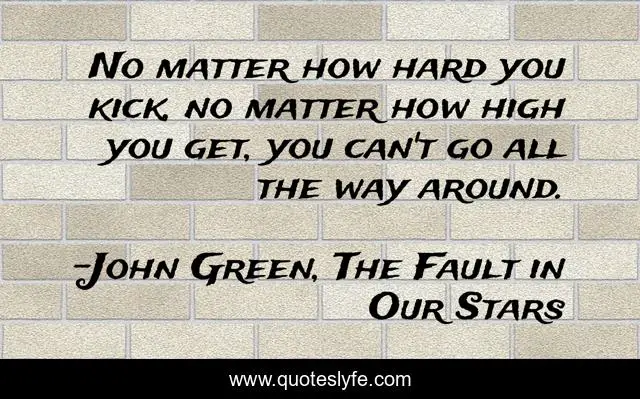 This page presents the quote "No matter how hard you kick, no matter how high you get, you can't go all the way around.". Author of this quote is John Green, The Fault in Our Stars. .