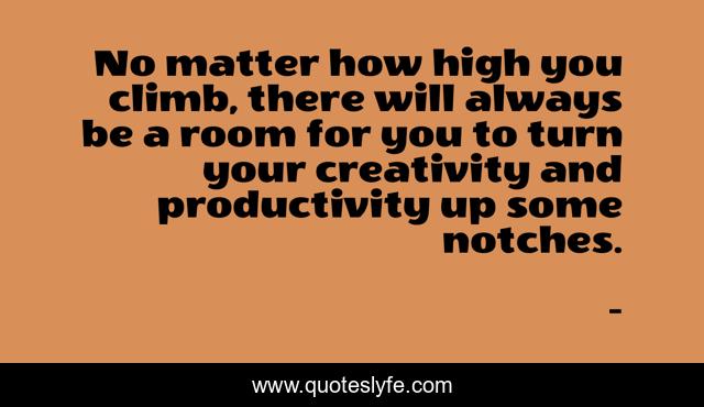 This page presents the quote "No matter how high you climb, there will always be a room for you to turn your creativity and productivity up some notches.". Author of this quote is . This quote is about edmond-mbiaka, creativity, productivity, there-is-always-room-for-growth,.