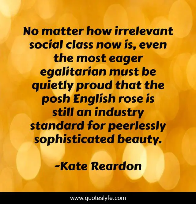This page presents the quote "No matter how irrelevant social class now is, even the most eager egalitarian must be quietly proud that the posh English rose is still an industry standard for peerlessly sophisticated beauty.". Author of this quote is Kate Reardon. This quote is about rose, proud, matter,.
