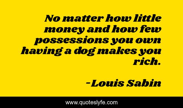 This page presents the quote "No matter how little money and how few possessions you own having a dog makes you rich.". Author of this quote is Louis Sabin. .