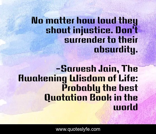 "Sarvesh Jain, The Awakening Wisdom of Life: Probably the best Quotation Book in the world Quotes." Quoteslyfe.com, 2025. Mon. 08 Dec. 2025. <https://www.quoteslyfe.com/quote/No-matter-how-loud-they-shout-injustice-83299>.