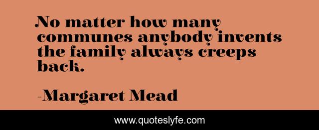 This page presents the quote "No matter how many communes anybody invents the family always creeps back.". Author of this quote is Margaret Mead. This quote is about ancestry, family,.
