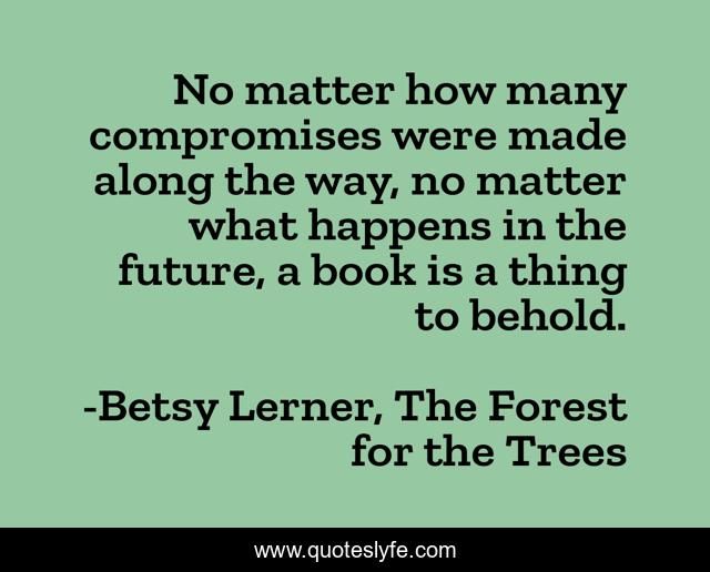 This page presents the quote "No matter how many compromises were made along the way, no matter what happens in the future, a book is a thing to behold.". Author of this quote is Betsy Lerner, The Forest for the Trees. .