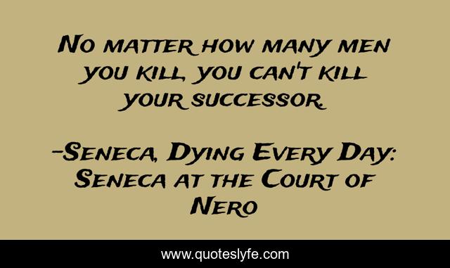 This page presents the quote "No matter how many men you kill, you can't kill your successor.". Author of this quote is Seneca, Dying Every Day: Seneca at the Court of Nero. This quote is about politics, murder, nero, wisdom,.