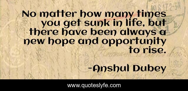 This page presents the quote "No matter how many times you get sunk in life, but there have been always a new hope and opportunity to rise.". Author of this quote is Anshul Dubey. This quote is about life, opportunity, hope, life-lessons,.