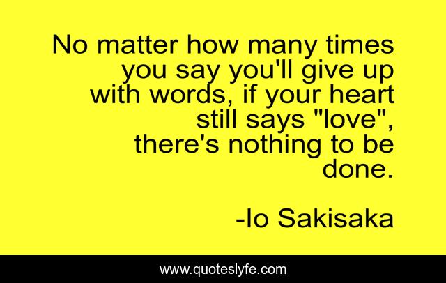 "Io Sakisaka Quotes." Quoteslyfe.com, 2025. Tue. 09 Dec. 2025. <https://www.quoteslyfe.com/quote/No-matter-how-many-times-you-say-209692>.