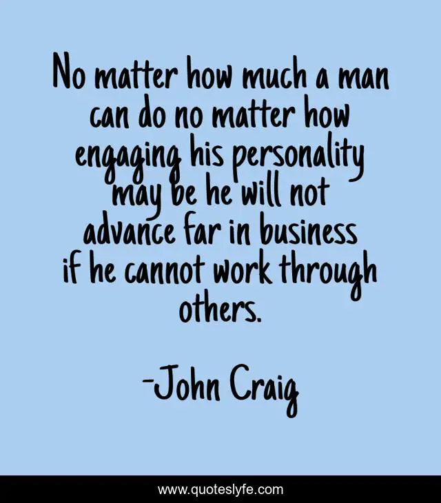 This page presents the quote "No matter how much a man can do no matter how engaging his personality may be he will not advance far in business if he cannot work through others.". Author of this quote is John Craig. .